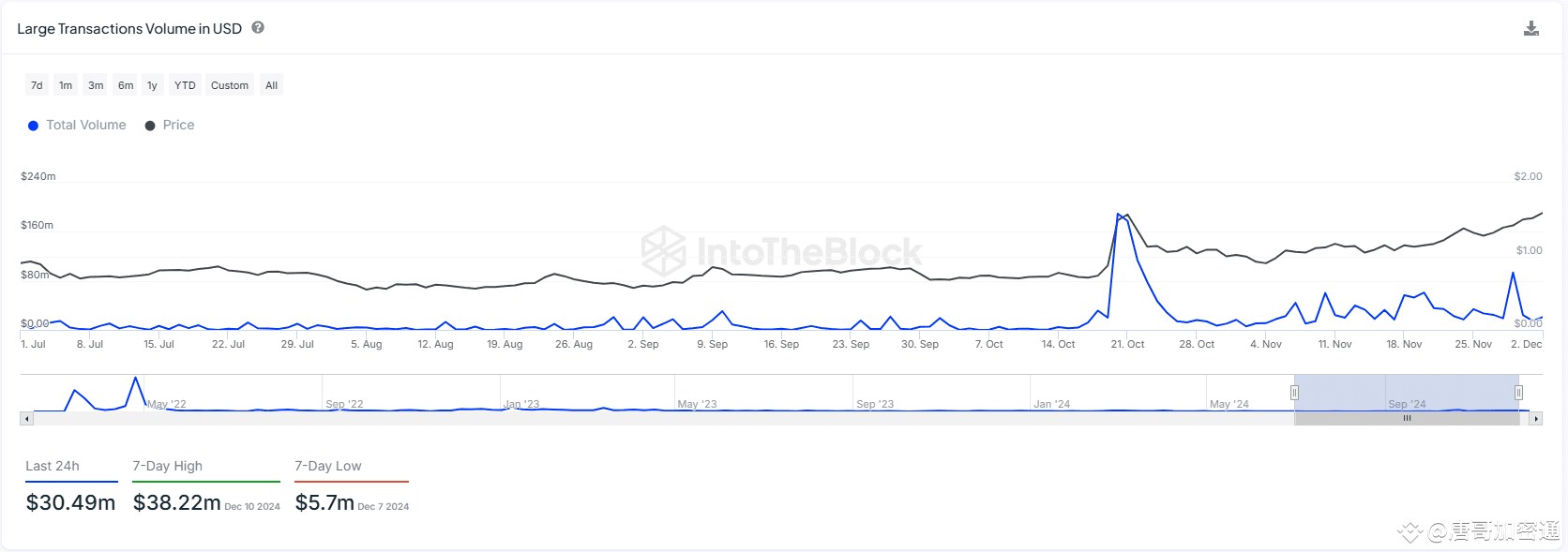 ApeCoin近期吸引了惊人的交易量,仅过去24小时内,大宗交易额就达到3049万美元,12月10日更是冲顶3822万美元。这种交易量的飙升通常意味着“聪明钱”的大举入场。数据显示,ApeCoin在过去几个月里持续受到机构和大宗投资者的关注,这一现象无疑进一步推动了价格的上涨。