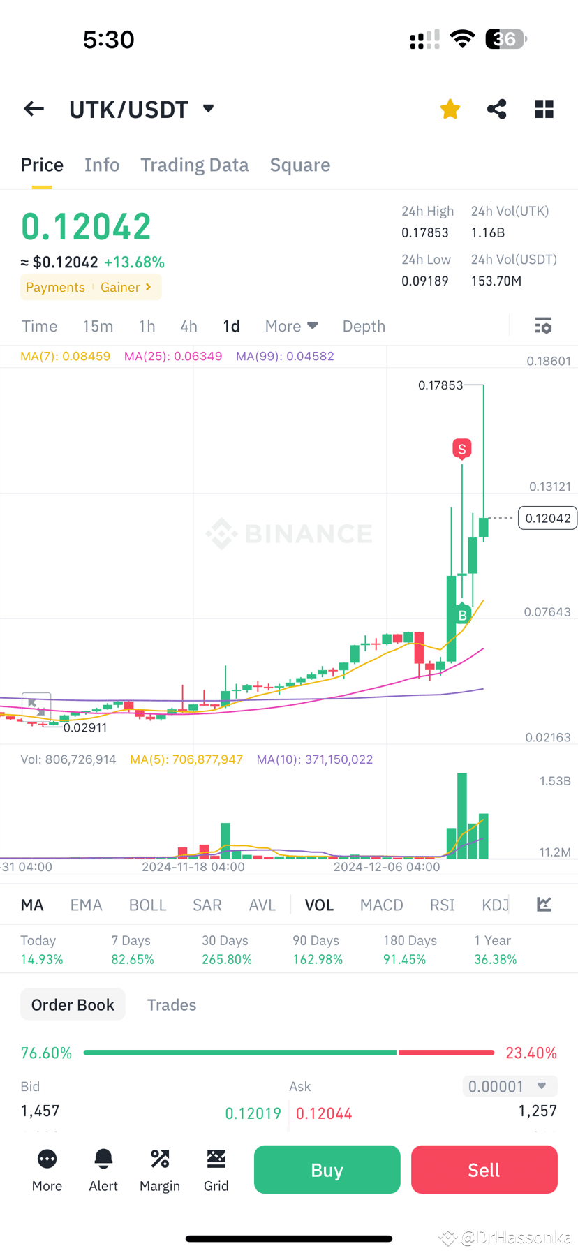 • 24H Volume: 1.16B UTK traded, signaling increased interest and activity.