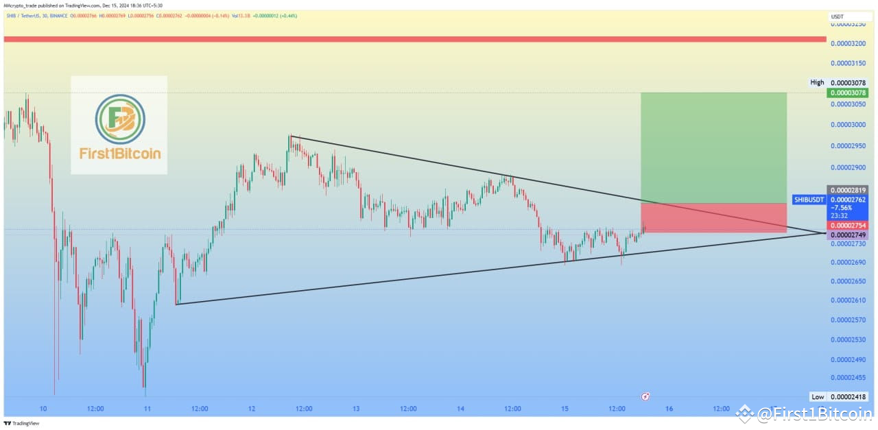 📊 #SHIB /USDT Analysis 🔥A breakout opportunity is forming! 📈🟢 Long Target: 0.00003078🔴 Stop Loss: 0.00002754Triangle pattern in play – breakout could be imminent! 🚀Trade Safely & DYOR! 📉📈