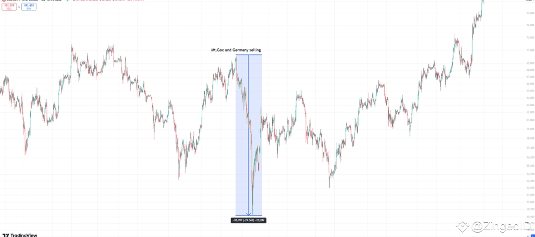 5/➫ Di sisi lain, situasi ini sangat mirip dengan apa yang terjadi dengan dump $9B Mt. Gox dan Jerman dari $70k ke $50k