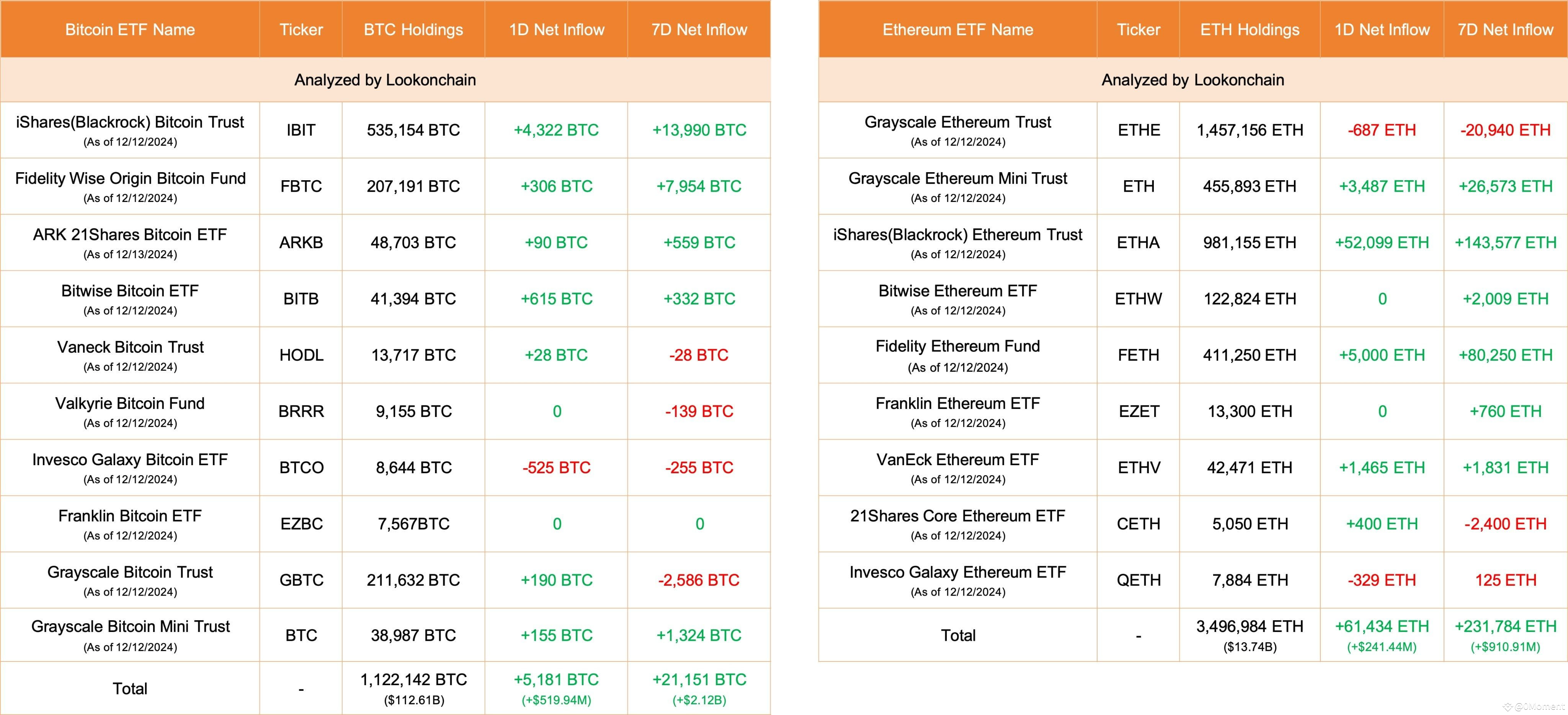 10 支比特币ETF净流量:+5,181 $BTC(+5.1994 亿美元)#iShares (Blackrock) 流入 4,322 $BTC(4.3372 亿美元),目前持有 535,154 $BTC(537 亿美元)。