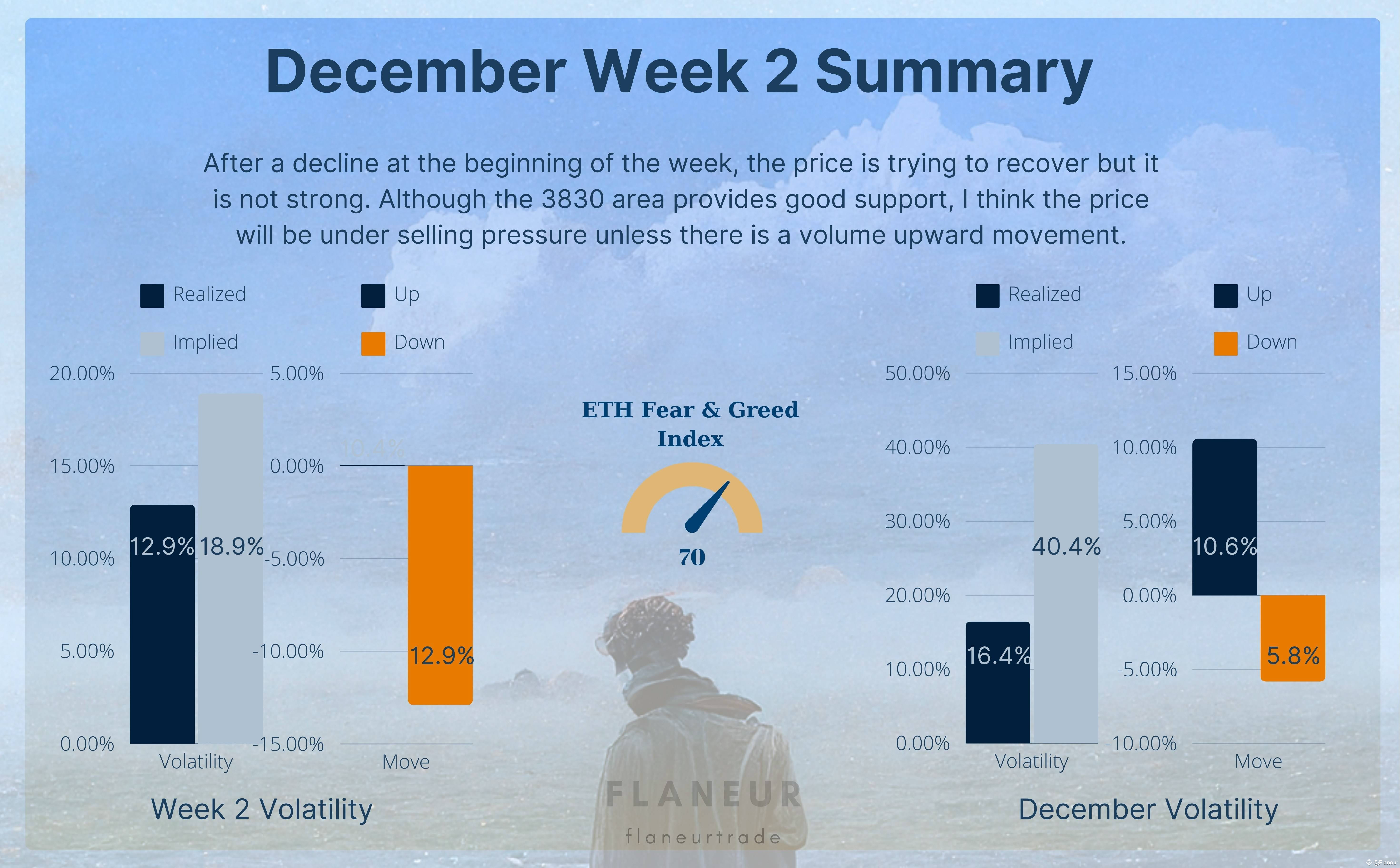 As I mentioned last week, opening the year too high might bring a sharp decline at the beginning of the new year. Or we might expect contrary movements like a sharp upward movement in the new year if it falls too much. This week's implied volatility range is 88.5k - 120.5k.