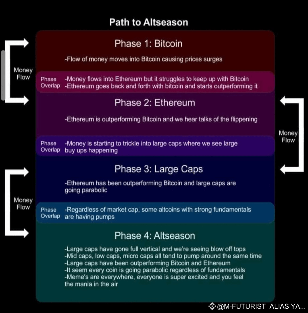 Nous sommes actuellement dans la phase de Markup, où la liquidité passe progressivement du $BTC aux jetons à grande capitalisation.