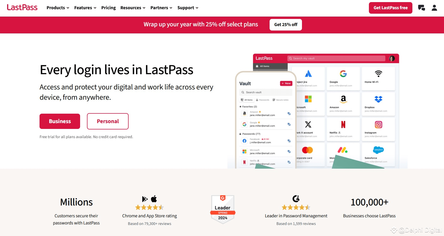 LastPass password management service homepage. Source: LastPass