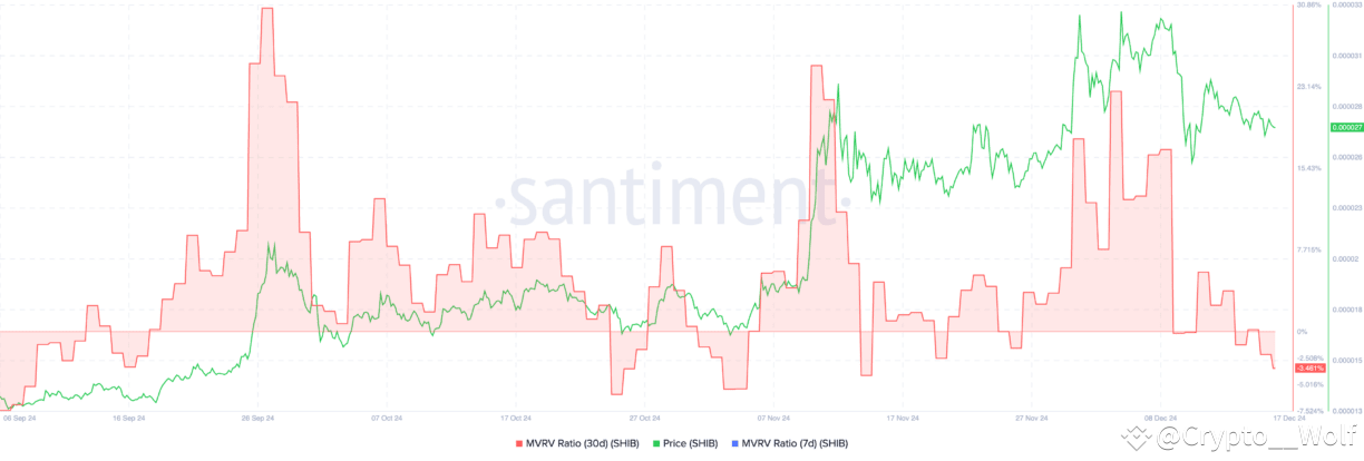 The 30-day MVRV is below zero, indicating reduced selling pressure as traders hold rather than sell at a loss. The declining supply of Shiba Inu price on exchanges suggests further bullish momentum, as fewer tokens are available for immediate sale.