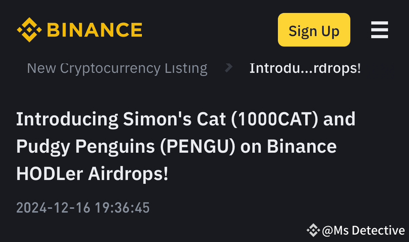 🔸 Binance announced the 5th projects on the HODLer Airdrops Portal - Pudgy Penguins (PENGU). Users who subscribed their BNB to Simple Earn products from 2024-12-09 00:00 (UTC) to 2024-12-12 23:59 (UTC) will get the airdrops distribution.