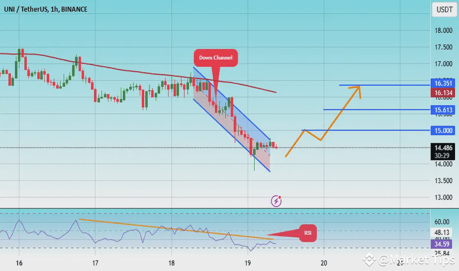 We have a bounce from the lower limit of the descending channel, this support is at 14.00
