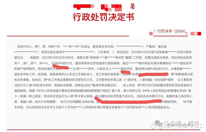 从这份网传的行政处罚决定书中可以看到工作室的老板是廖某,工作室一共有四名员工,该工作室的运营模式是在交易所与需要买币的客户联系,在交易所内使用**货币购买虚拟货币,随后在场外将购买的币高价卖给境外买币客户。处罚决定书里的**货币我猜可能是指某国的法定货币,为了与虚拟货币区分所以用**货币。总而言之,工作室的获利模式是通过交易所内买币,高价在场外卖去搬砖赚差价。