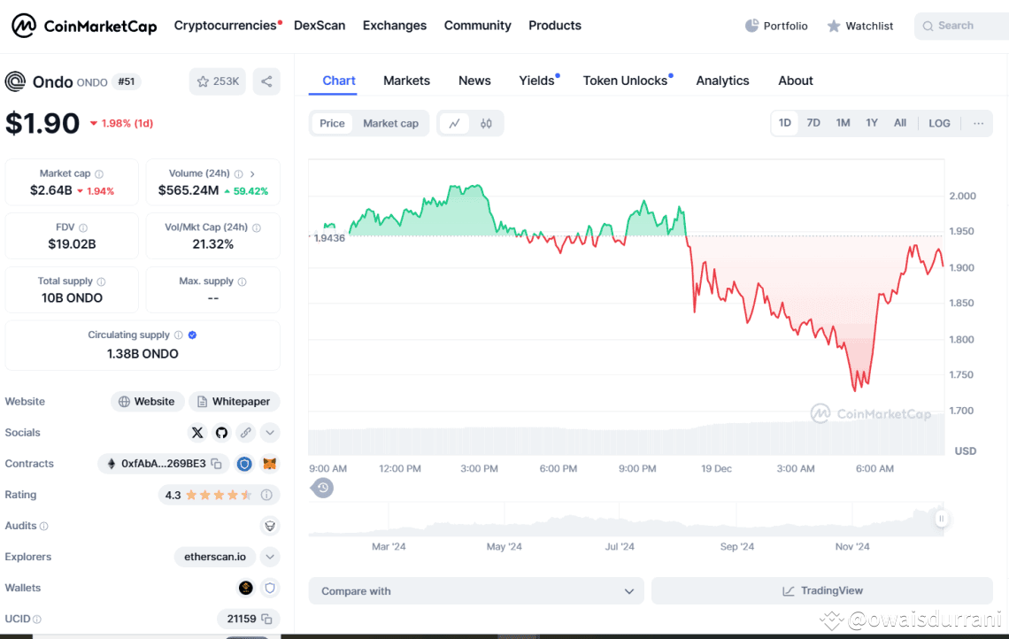 Today Ondo (ONDO)is reading at $1.93; having gone up 80.49% within the past 30 days. In the past 24 hours, ONDO price has plummeted following a rise on December 17. ONDO had surged by over 11.8% to trade at $2.03. The price may have been influenced by the $250K purchase by Donald Trump’s WLFI. Simultaneously, the trading volume surged to $574.56 million; a 127% increase. The $250K might have sparked investor interest leading to the token rise from $1.81 to $2.1. Looking at the declineofy 1.86% in the past 24 hours, it could be time to shift to a new top performer.