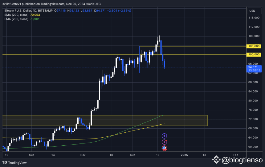 Bitcoin đã phải đối mặt với đợt điều chỉnh lớn đầu tiên kể từ đầu tháng 11, giảm 13% so với mức cao nhất mọi thời đại là 108.364 đô la. Đợt giảm giá đột ngột này đã gây chấn động trên toàn thị trường tiền điện tử, chuyển tâm lý từ cực kỳ lạc quan sang không chắc chắn và thậm chí là sợ hãi. Đợt bán tháo này đặc biệt tàn khốc đối với các altcoin, nhiều altcoin trong số đó đang mất giá mạnh khi Bitcoin đang vật lộn để lấy lại đà tăng.