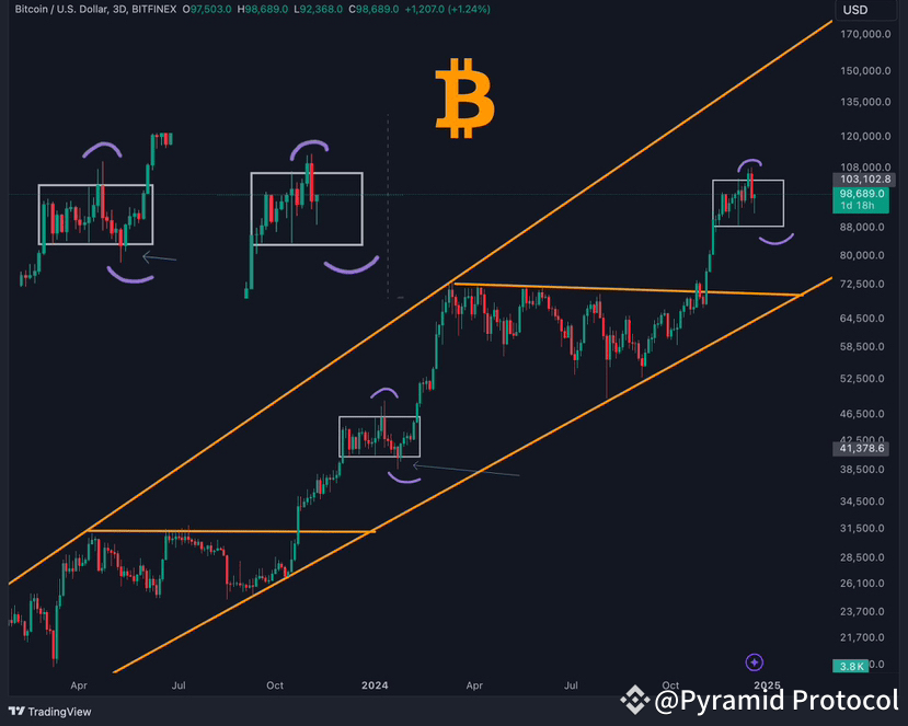 Earlier in the cycle, Bitcoin displayed a similar consolidation phase, leading to a breakout and rally.