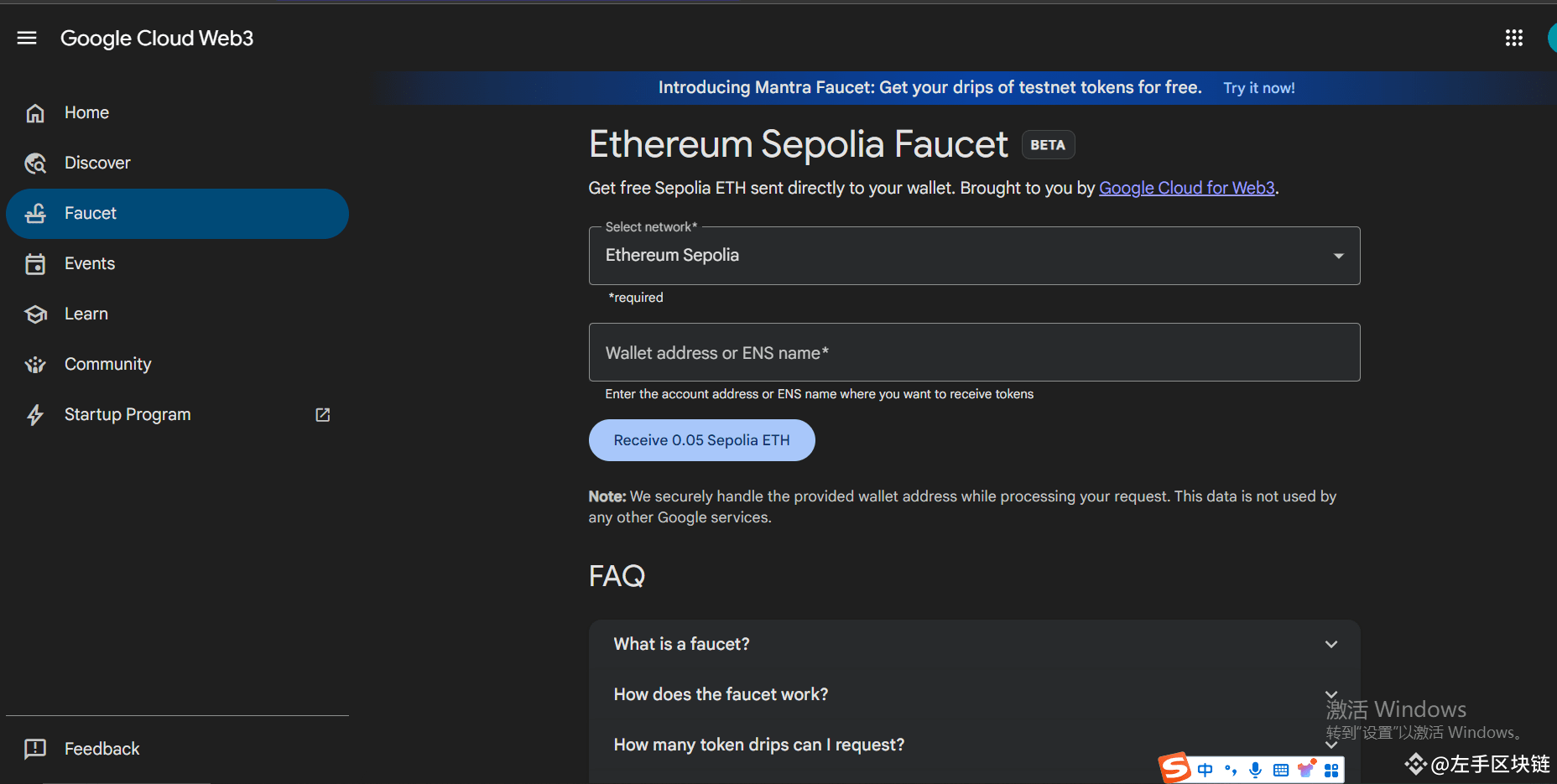 1 领水:https://cloud.google.com/application/web3/faucet/ethereum/sepolia