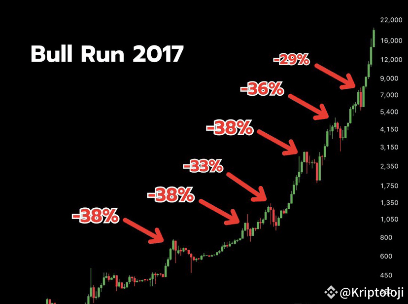 🔸 In 2017’s mega bull run, $BTC had multiple 30-35% corrections, and altcoins were wrecked.