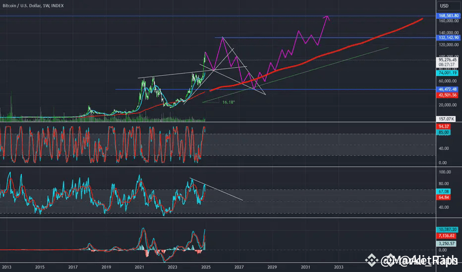 I think a 20% correction to about 80k in early spring and a 2025 top around 130k is in play. The correcting to around 50k in 2026-27... Then by 2030-32 after the next halving maybe around 170k. Then rinse and repeat. Which is why a DCA approach with this asset is the most logical emotionless approach with this asset. $20-$100-$500 a week. I don't know your budget. But that is what I will be doing from here on out with Bitcoin. Because I think it would be a dereliction of duty to any portfolio to not be doing so at this point.