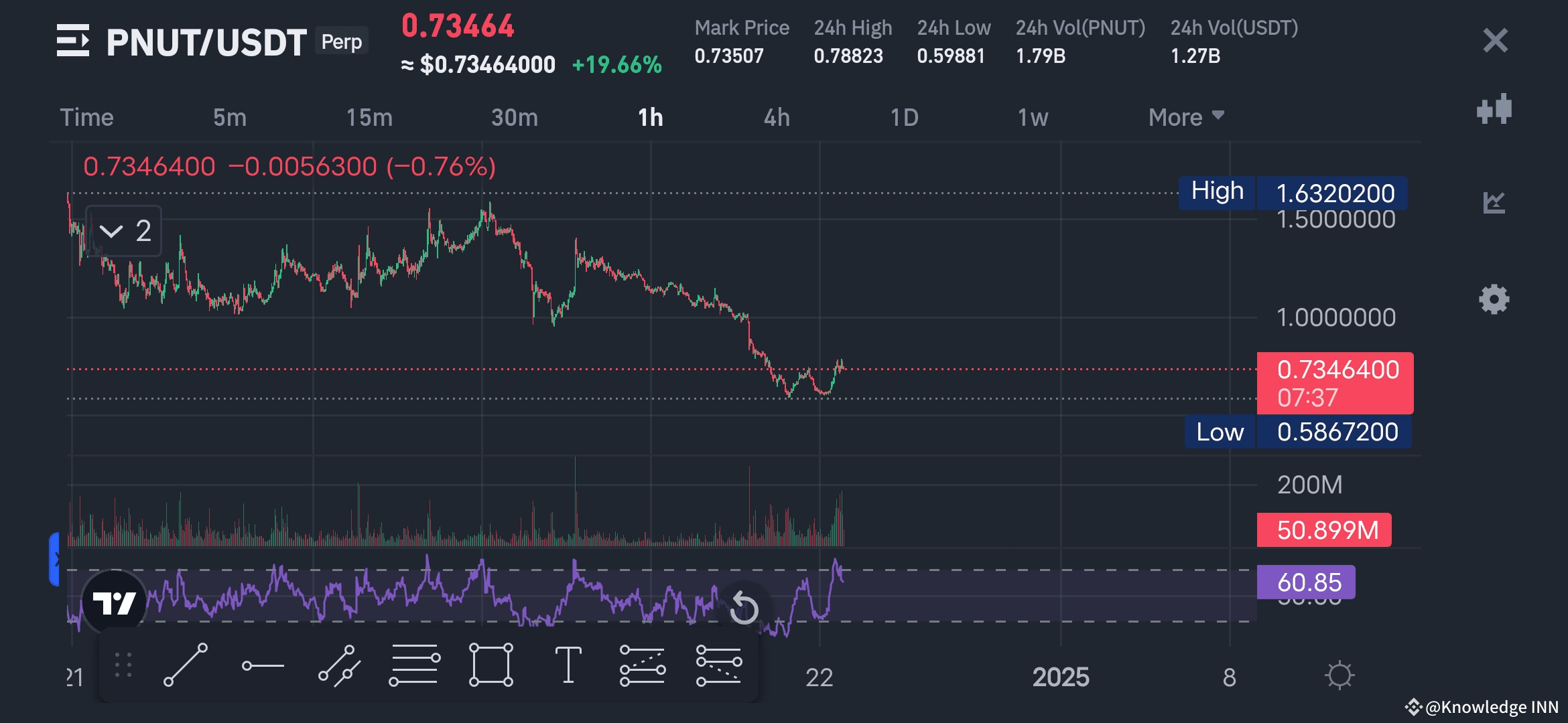 The chart displays PNUT/USDT on a 1-hour timeframe with recent price action. Here's a quick analysis: