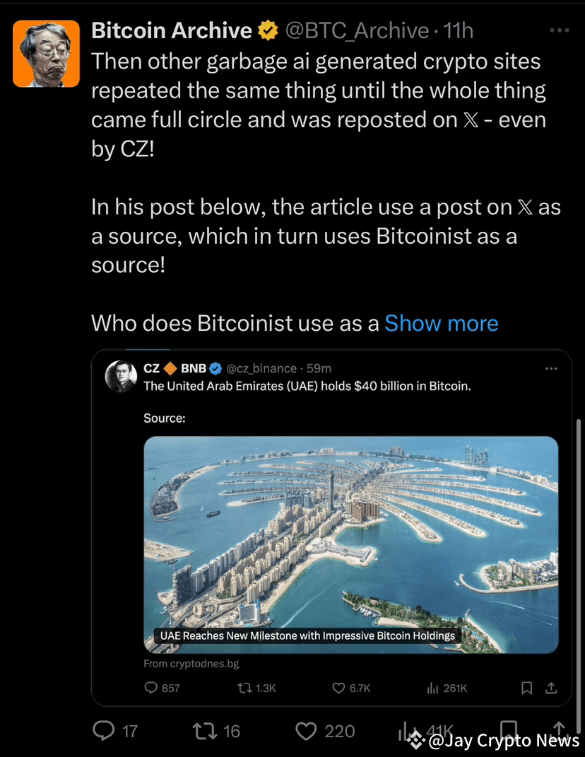 Bitcoin Archive recently highlighted the lack of verifiable sources behind a report published by Bitcoinist, which claimed that the UAE’s Bitcoin holdings had reached $40 billion. According to Bitcoin Archive, the article failed to provide any credible evidence or supporting links to substantiate the acquisition. After conducting their own research, Bitcoin Archive found no confirmation of such a major purchase.