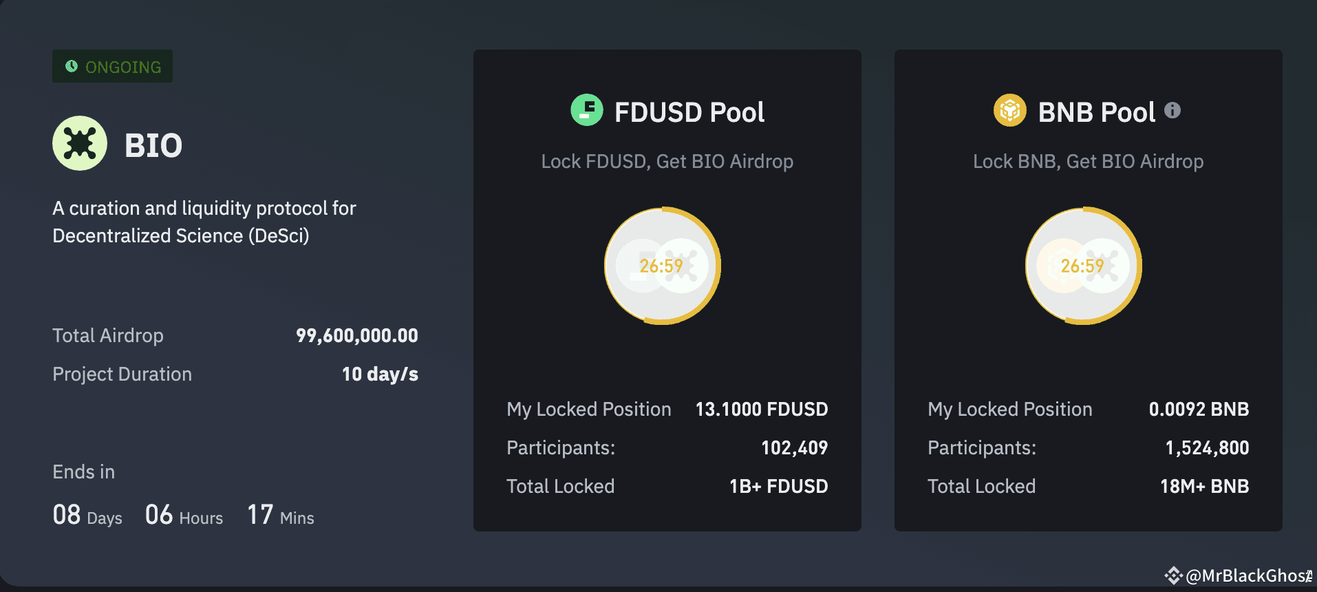 • Users can lock BNB and FDUSD tokens to farm $BIO over a 10-day period.