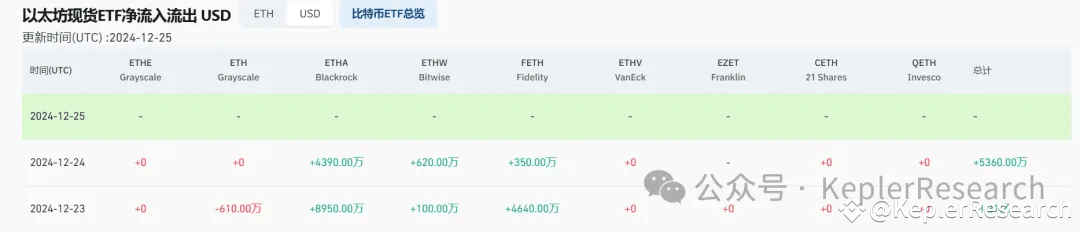 尽管比特币在圣诞节前的一周经历部分资金流出,但最终仍获得了3.75亿美元的净流入,反映出市场情绪并不如预期悲观。