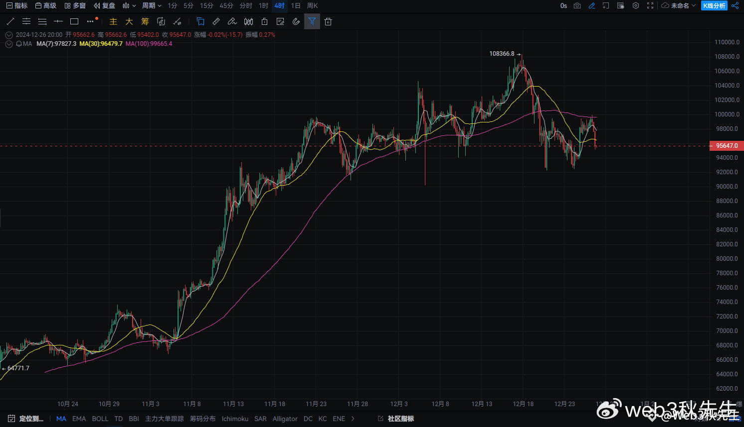 因此,除非比特币能够在2025年1月中旬前突破历史高点,否则现在宣布牛市反弹可能为时过早。即便像MicroStrategy这样的机构大户参与,也可能不足以推动市场反弹。相反,95,000至98,000美元的盘整区间可能正是比特币为下一波上涨积蓄动力的必要阶段。