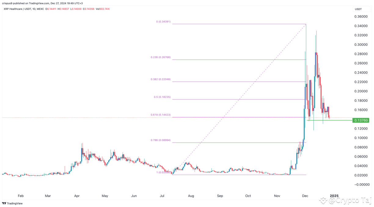 XRP Healthcare is another small XRP token to buy ahead of the Ripple ETF approval. With a market cap of $10 million, it is a fairly small coin that is not well-known. However, it has a strong utility since it aims to reduce prescription costs in the United States. It is a top player in the XRP Ledger protocol.