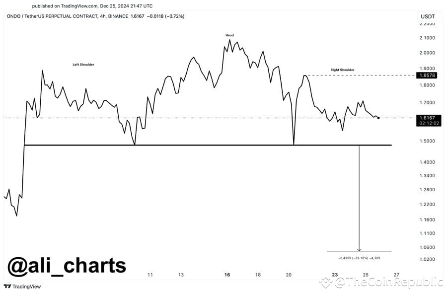 #CryptoTrading. #ONDO #HeadAndShouldersPattern #CryptoNews #TheCoinRepublic