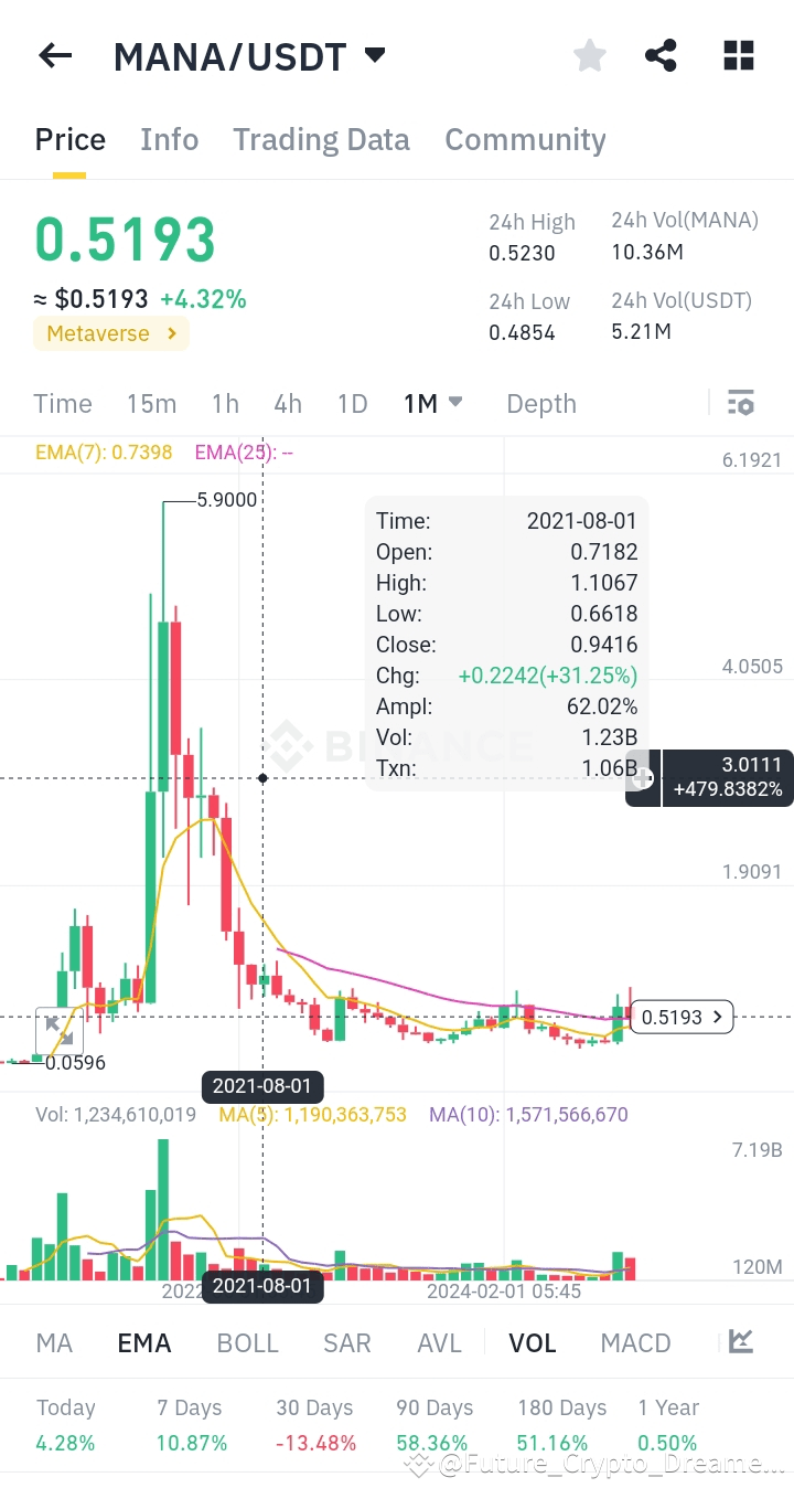 Coinpedia is more bullish, predicting that MANA could reach between $5.15 and $6.17 by 2030.
