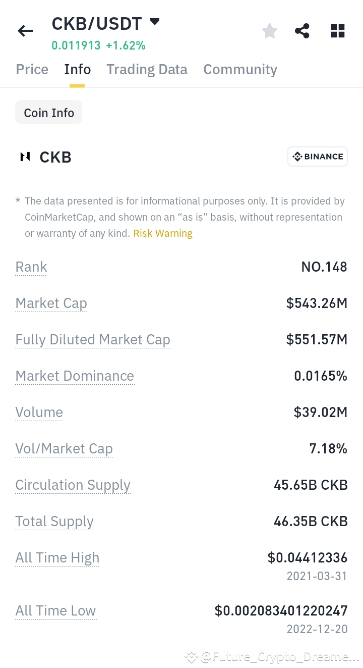 As of December 29, 2024, CKB is trading at approximately $0.01193, with a 24-hour trading volume around $38 million.