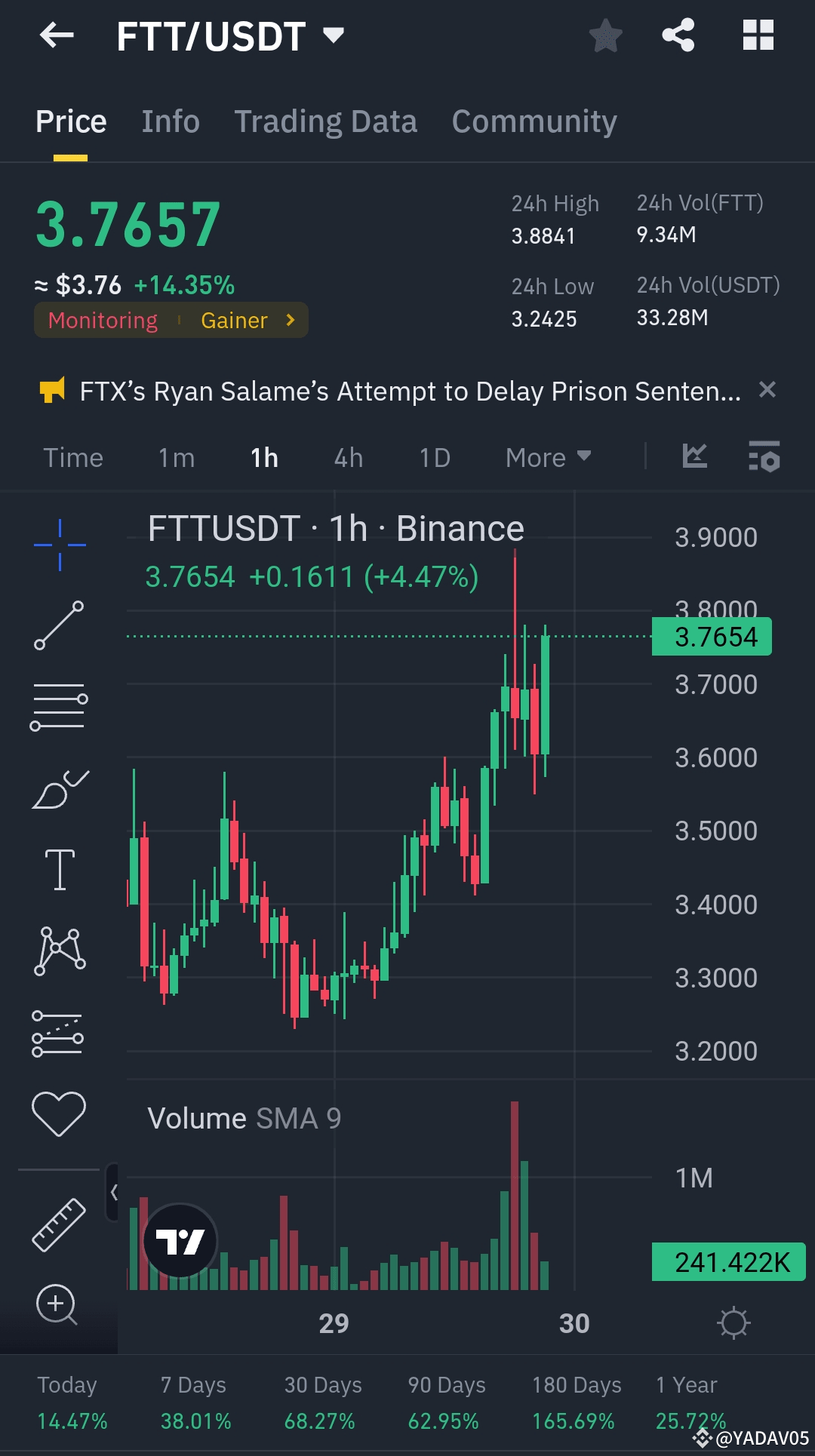FTX Token (FTT) is currently trading at $3.69, reflecting a 12.16% increase over the past 24 hours.