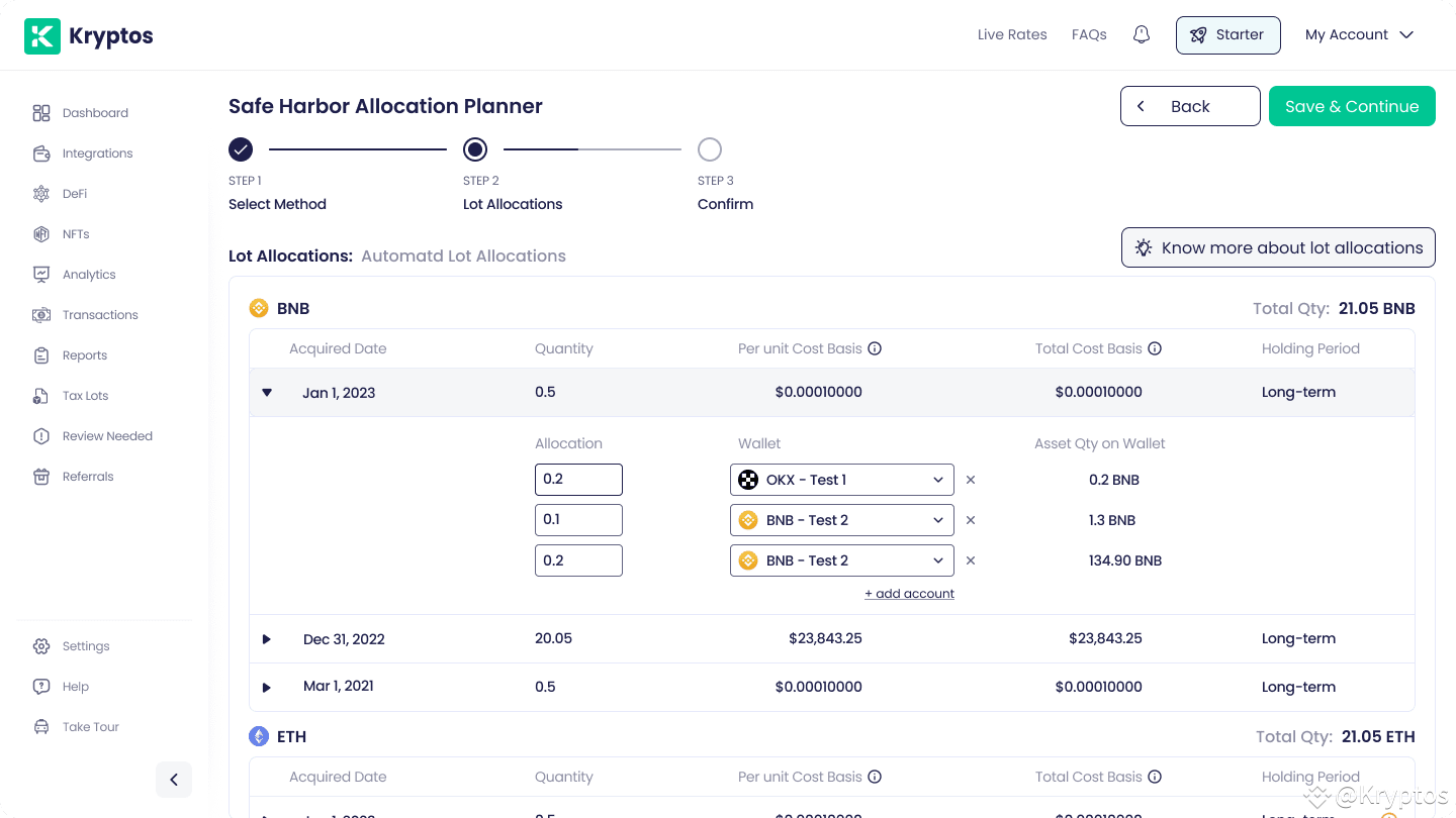 The Safe Harbor Planner equips users with tools to align with IRS guidelines, including migration of tax lots, automated tax lots planner, and robust support for exporting reports. This capability ensures investors, CPAs, and businesses can meet compliance requirements for crypto taxes without disrupting their broader financial strategies.
