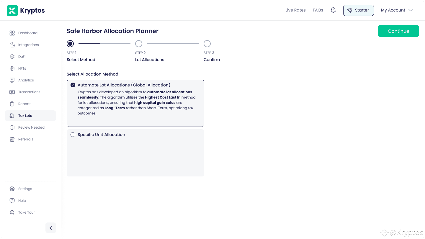 GOTHENBURG, SWEDEN, December 30, 2024 - With over 50 million U.S. crypto investors impacted by new IRS regulations, Kryptos has launched its Safe Harbor Planner to simplify compliance with Rev Proc 24-28. Specifically designed to help users and CPAs meet the December 31 deadline for selecting an allocation method, the Planner also facilitates a seamless migration from Universal Cost-Basis tracking to Per-Wallet tracking. Kryptos is the only platform to support both Global Allocation and Specific Unit Allocation methods, offering unmatched flexibility and precision in digital asset tax reporting.