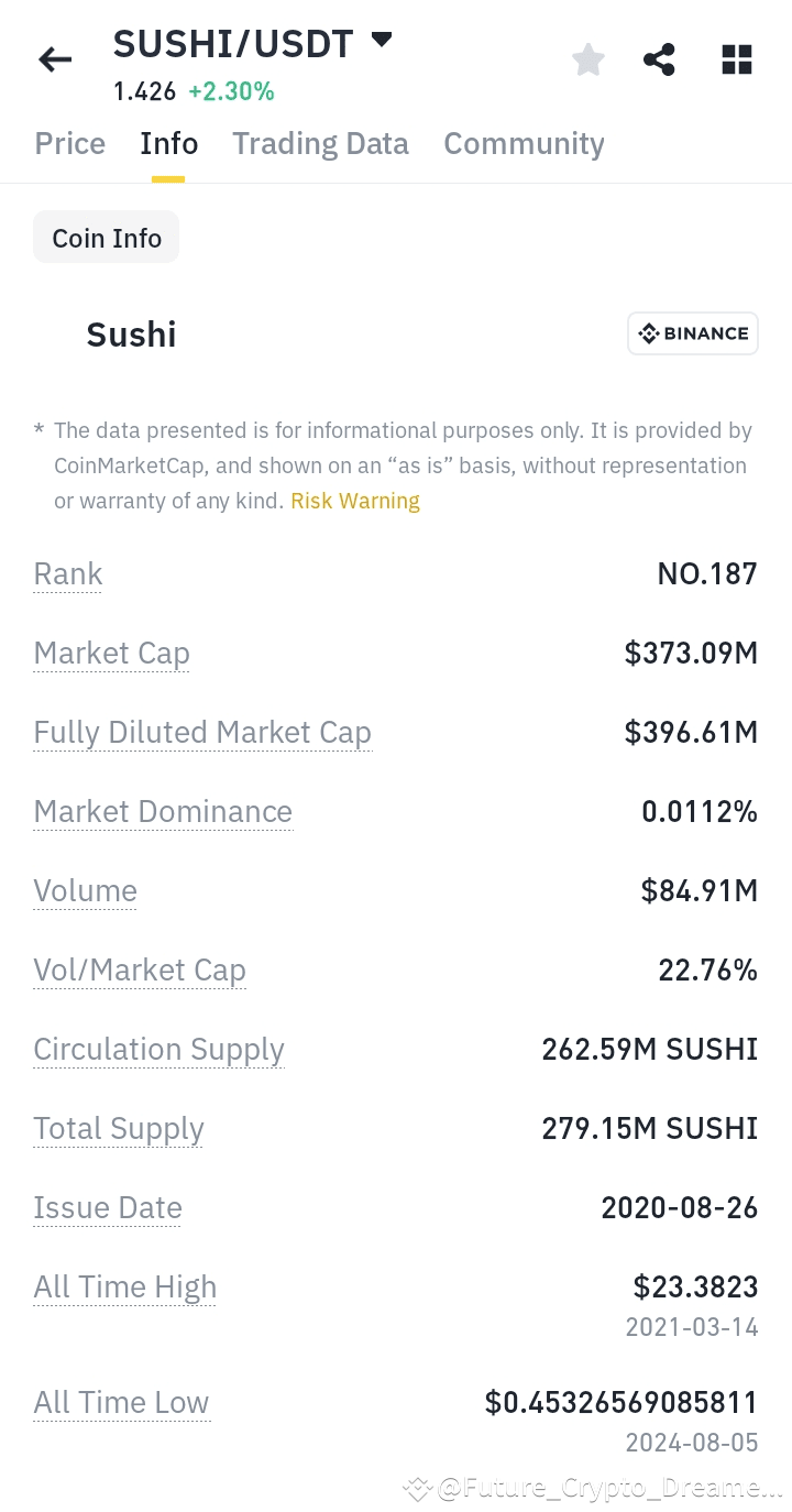 SushiSwap (SUSHI) is a decentralized exchange (DEX) operating on multiple blockchain networks, including Ethereum, Solana, and Binance Smart Chain. It enables users to trade cryptocurrencies without intermediaries and offers features like staking, allowing SUSHI token holders to earn a portion of transaction fees.