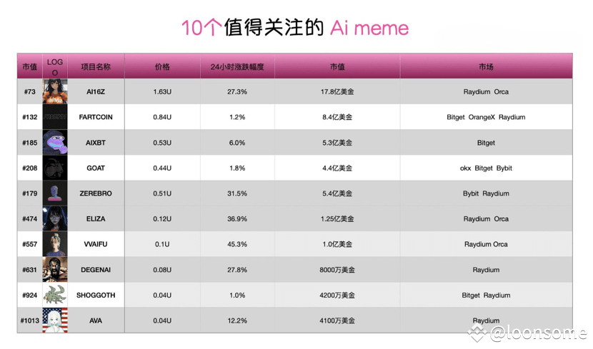 #MEME #比特币战略储备 链上总共10款火热AI MEME代币
