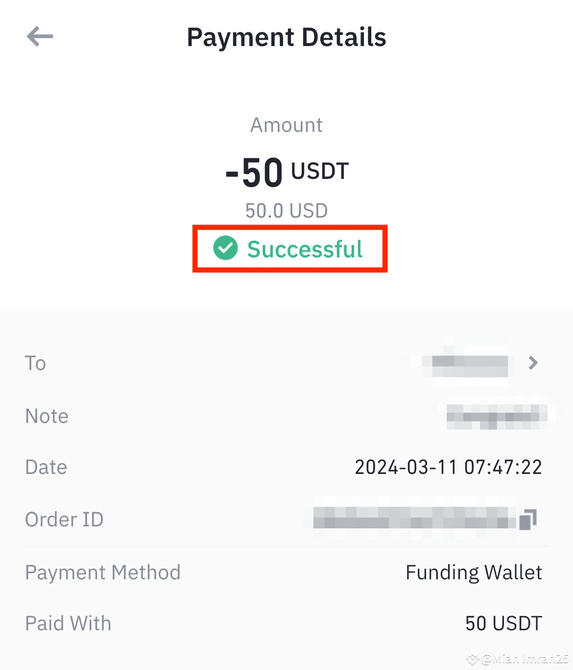 2. Request payment in USDT and transfer it to your Binance wallet.
