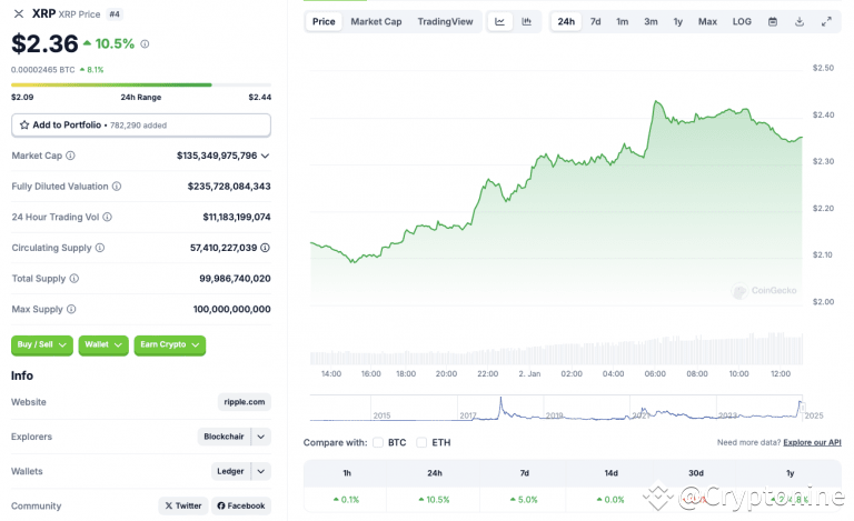 According to CoinCodex, XRP is projected to hit $2.54 by January 20, 2025, which would represent a 7.63% rally from current levels.