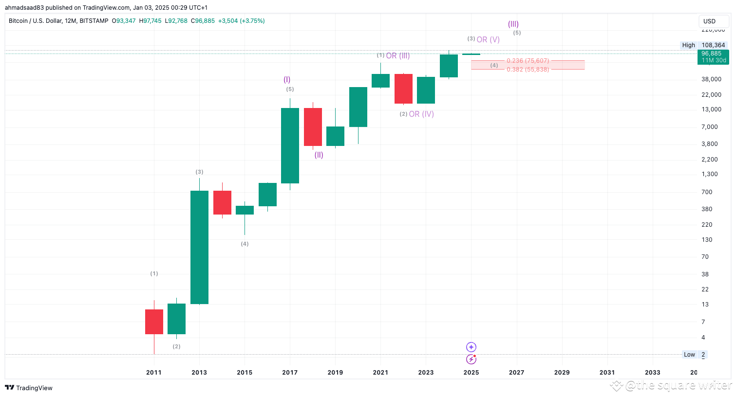 Sub-Wave 3: Current rally to $108,000, with potential extension towards $125,000.