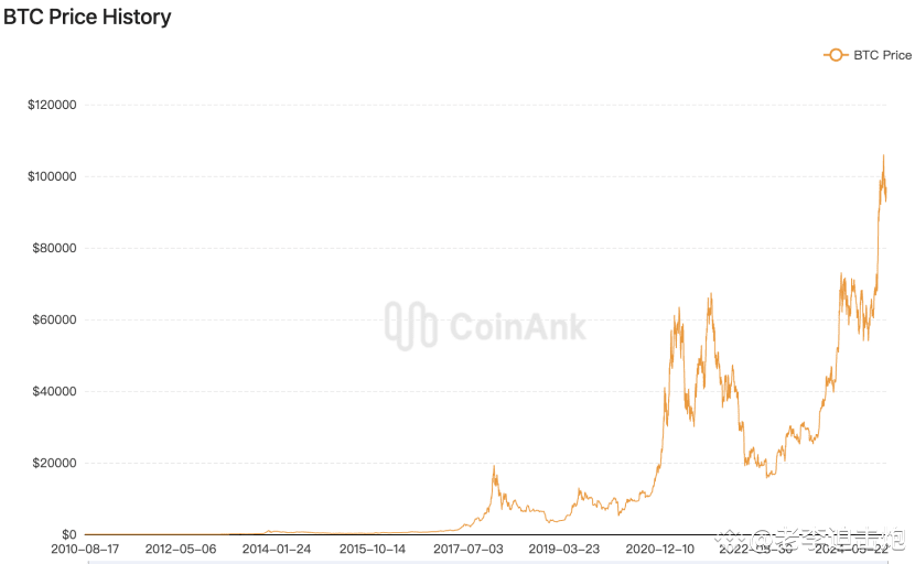 图为#coinank 数据,比特币历史价格。