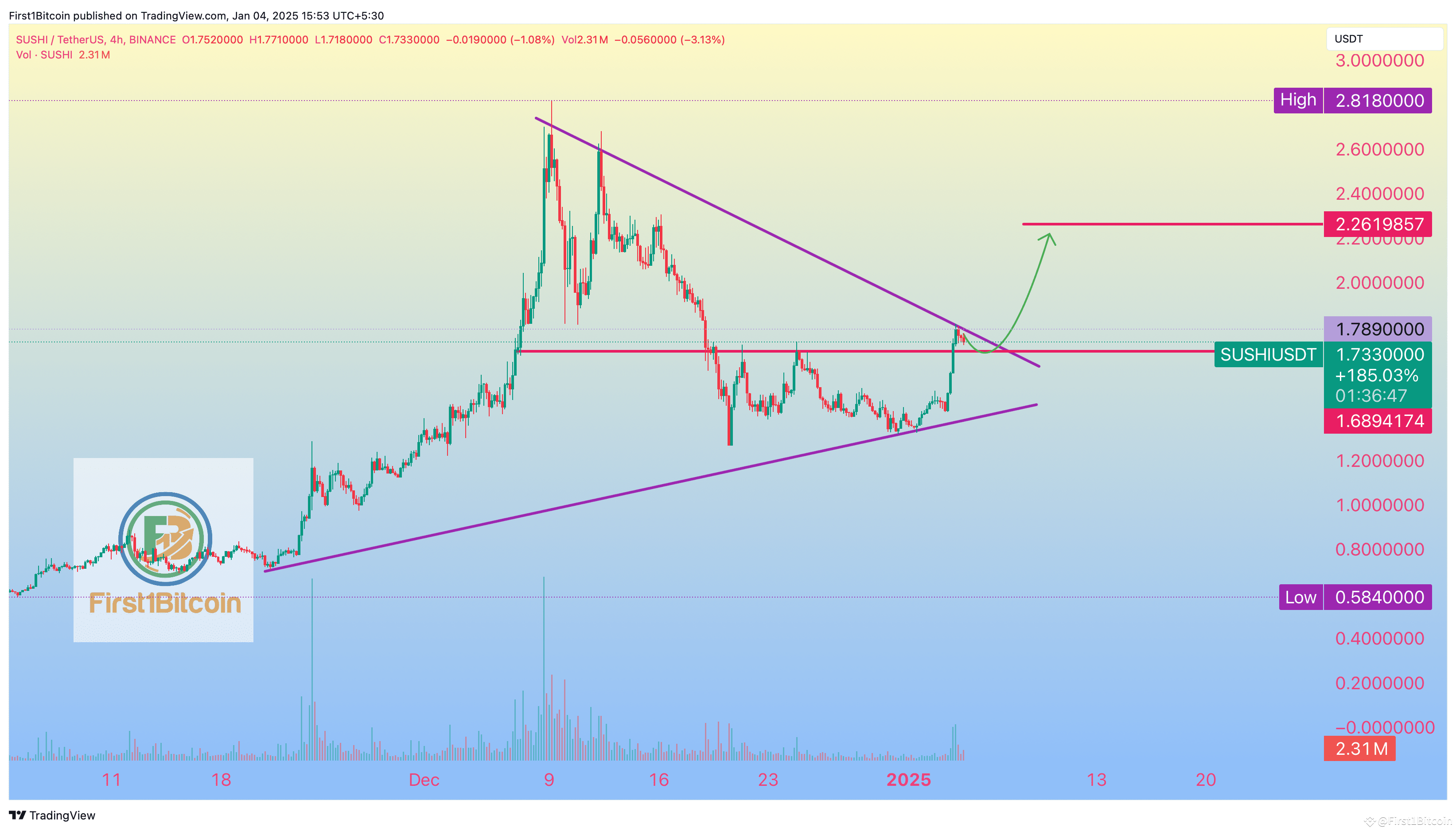 #SUSHI is testing a key resistance zone in a descending wedge pattern! If it breaks above $1.79, the next major target could be $2.26. 🚨 A confirmed breakout may lead to a strong bullish rally.