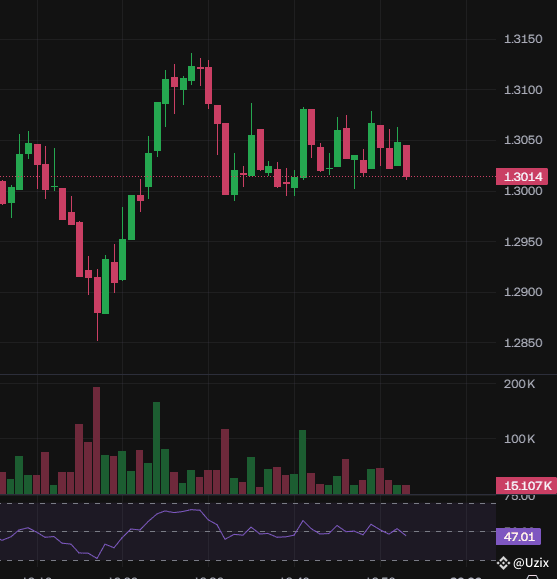 The volume fluctuates throughout the chart. There are periods of higher volume, which could indicate increased interest or activity in the asset.