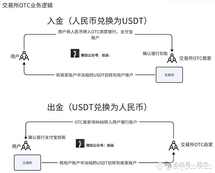 从国内币圈用户的视角来看,想要投资虚拟货币,首先需要将法币通过U商兑换成稳定币USDT。U商的兑换渠道主要分为交易所内的OTC产品以及场外OTC。