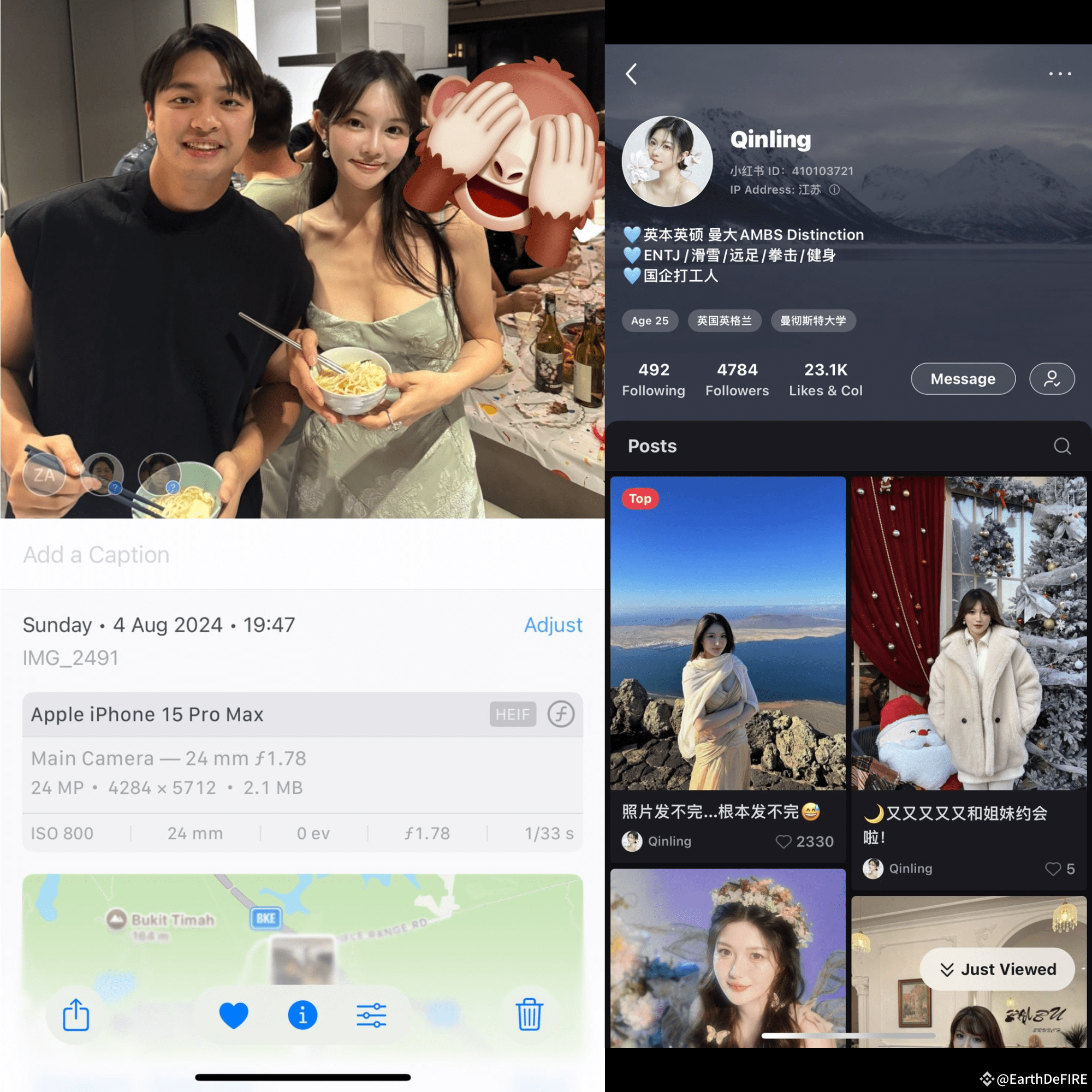 แล้วมีอินฟลูจีนไปค้นว่า เธอมันรูปปลอม เจอรูปจาก Xiaohongshu (ตีซะว่าคล้ายๆ Lemon8 หรือ เว็บบล็อกกิ้งด้านไลฟ์สไตล์) แถม 1,800BTC ก็โม้ ไม่จริง