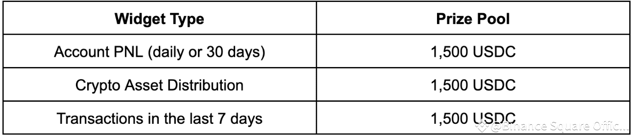 Eligible creators can share in the $4,500 USDC prize pool. There are three sub-prize pools, one for each type of widget. You can maximize your chances by making three separate posts using each of the different widgets.