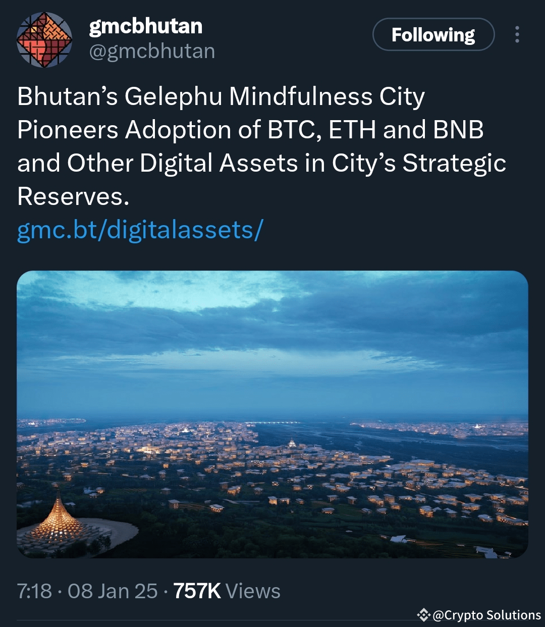 In essence, Bhutan's Gelephu Mindfulness City is not just adopting cryptocurrencies; it's pioneering a new approach to economic strategy in the digital age. This bold step by GMC might just be the domino that starts a chain reaction towards global blockchain adoption.