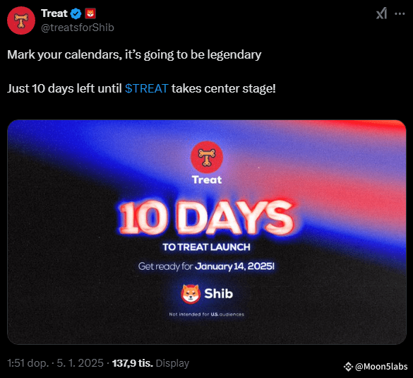 According to an official update on Treat’s X account, the token is set to launch on January 14. This announcement has sparked anticipation within the community, with investors speculating on the potential impact on the price of SHIB, the ecosystem’s flagship cryptocurrency.