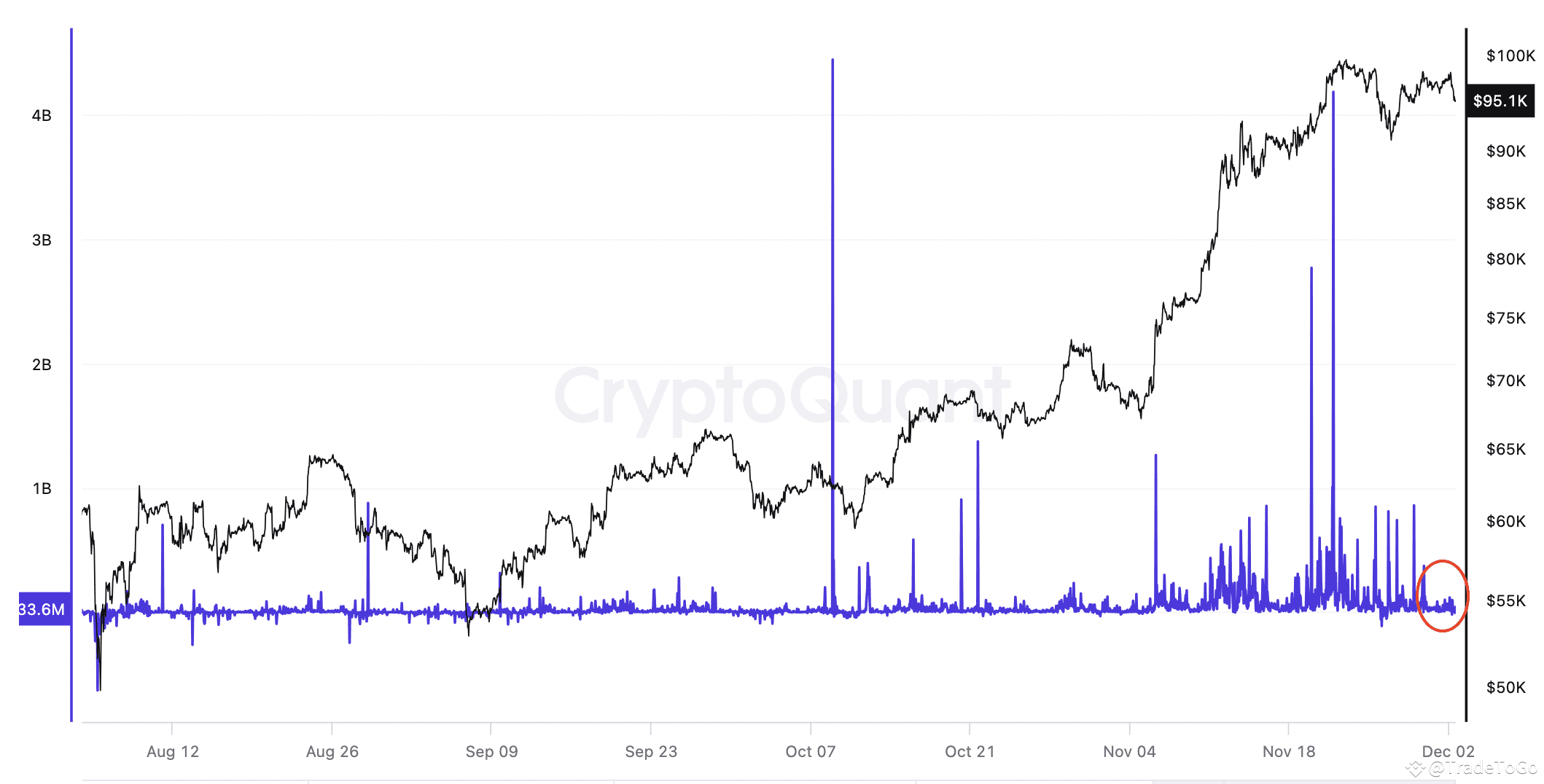 Another indicator is the Net Realized Profit, which measures changes in Bitcoin’s on-chain capital flows. On November 21, the Net Realized Profit peaked at $1.08 billion but has since dropped and plateaued at approximately $33 million. This suggests that while some investors made profits, the overall profit-making activity has slowed down, creating a balance of market forces.