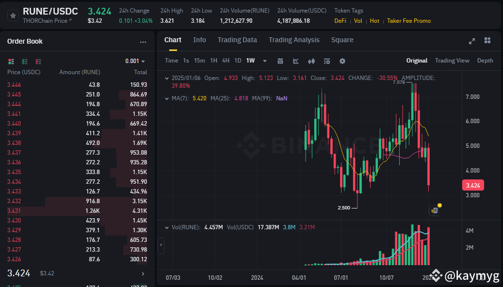 #Thorchain , a decentralized liquidity protocol, is facing significant challenges as its native token, $RUNE , undergoes a steep decline in value. These developments expose critical #vulnerabilities in its lending mechanics, raising serious questions about the protocol's long-term viability and solvency.