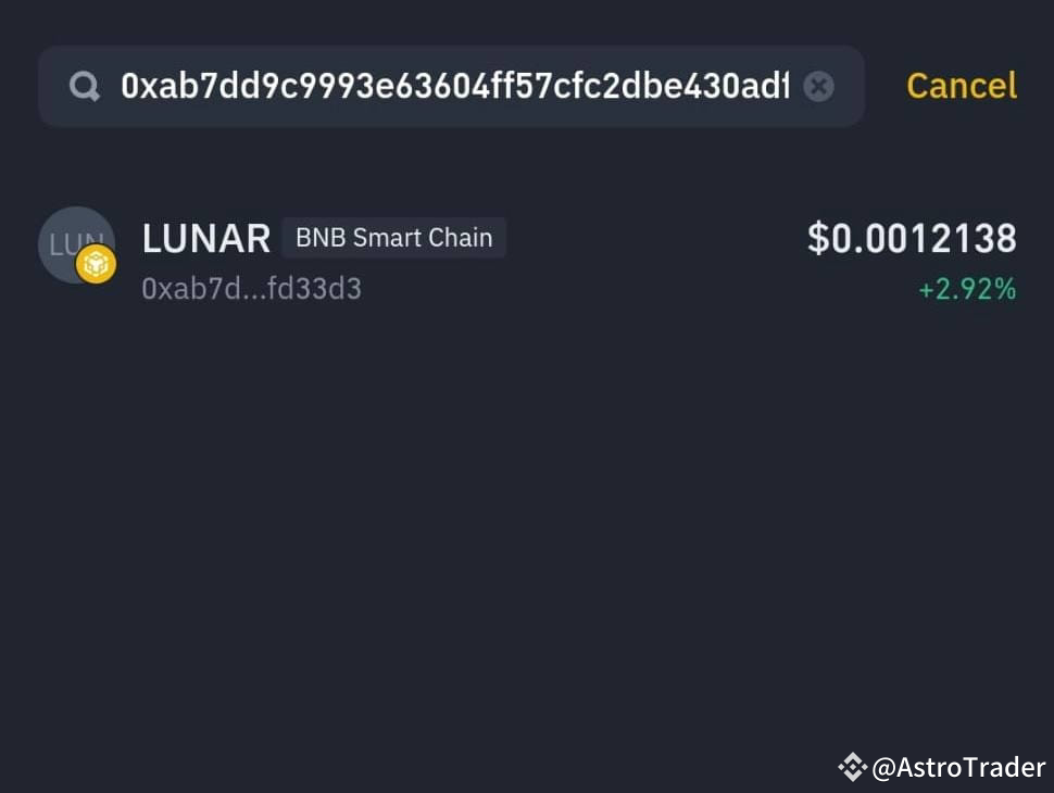 3️⃣ Paste the contract address for $LUNAR, then confirm to add it.