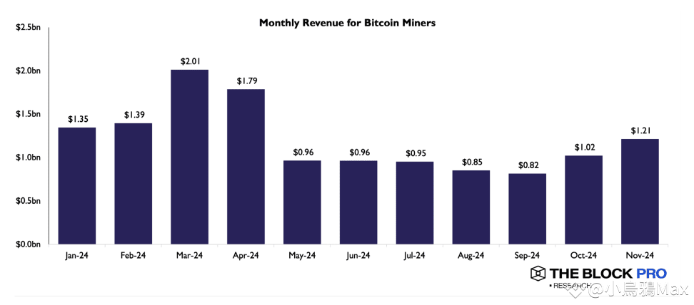 2024 年是比特幣第四次減半的一年,比特幣區塊獎勵從 6.25 枚減少到 3.125 枚。儘管減半降低了礦工的收入,但比特幣價格的上漲和鏈上活動的增加,例如比特幣銘文(Ordinals)、BRC-20 代幣和 Runes 代幣的交易,彌補了這一損失,使礦工收入達到 133 億美元,超過了 2023 年的 105 億美元。