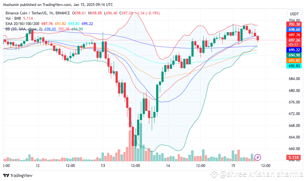 BNB has demonstrated significant growth over the years, with notable volatility influenced by market sentiment, regulatory news, and developments within the Binance ecosystem. The recent stabilization around the $697 mark indicates a consolidation phase, with investors closely monitoring upcoming developments.
