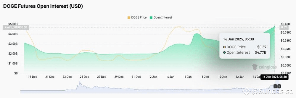 - 💥 Open Interest Surge: The open interest in DOGE futures has jumped by 6.3%, reaching over $4.73 billion, indicating that traders are anticipating further upward momentum.