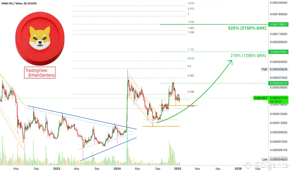 * Breakout and Correction: SHIBUSDT recently experienced a bullish breakout, followed by a correction. The correction ended with a strong higher low, suggesting a potential reversal.